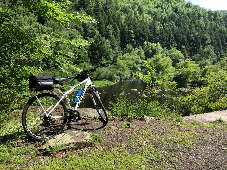 Originally we didn’t plan to make it all the way up from White Heaven to Jim Thorpe town but we missed road sign and out of excitement didn’t feel that we tired at all. Somehow we’re managed to convinced ourselves that 15 Miles should’ve shown affect on our body and we proceeded to go further. We’re realized that we actually close to the final destination when we crossed familiar railroad. By that time our butts also realized that we probably shouldn’t be that excited 😊. Bike seat could do some damages, and when people saying something about pain in the butt, they are probably referring bike seat.