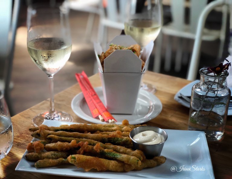 It’s located right on Marina and provides a beautiful live view of fisherman life.Mmm… Sweet&Spicy Thai Crispy Calamari ($15) and Asparagus Fries ($14).