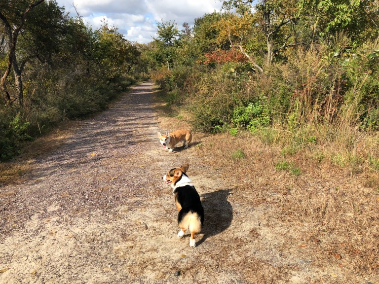 Never mind than. We just went for a little walk, although not too far. I was alone and since I have two corgies (not pitbulls)it was kind of uncomfortable for me to continue to walk unknown path.