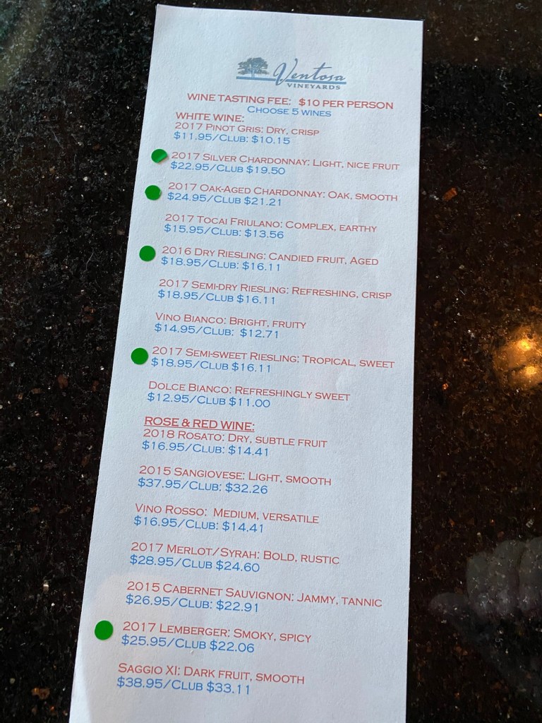I truly enjoyed all of the 5 choices of wine in Ventosa.